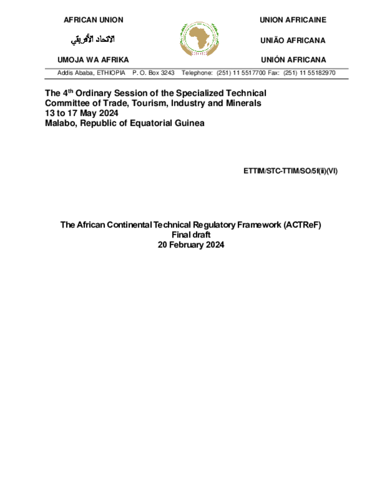 The African Continental Technical Regulatory Framework (ACTReF)